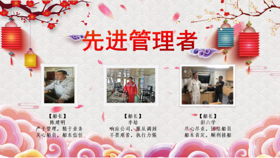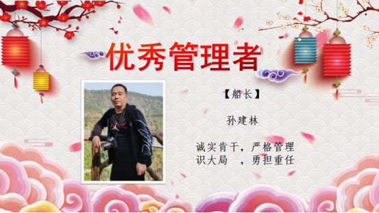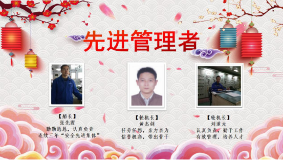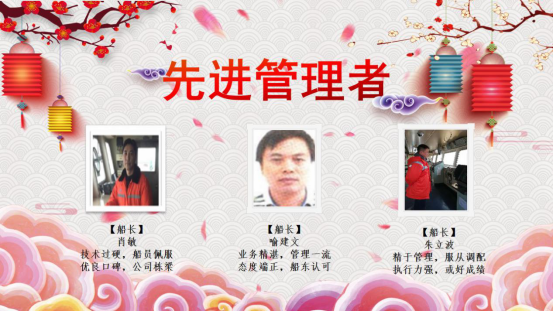 2004到2019,十五年來興盛洋公司不斷地發(fā)展壯大,公司的每一次進(jìn)步都離不開所有人的努力。在新春佳節(jié)到來的時刻,也同樣是豐收的時刻,經(jīng)船員主管的推薦和公司的評選,本年度優(yōu)秀管理者、先進(jìn)管理者以及優(yōu)秀船員名單已產(chǎn)生。